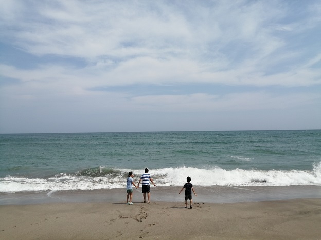 海の家やライフセーバーの方はいないので、遊泳はしないほうが無難です。子供達は砂浜で少し水遊びする程度に止めました。