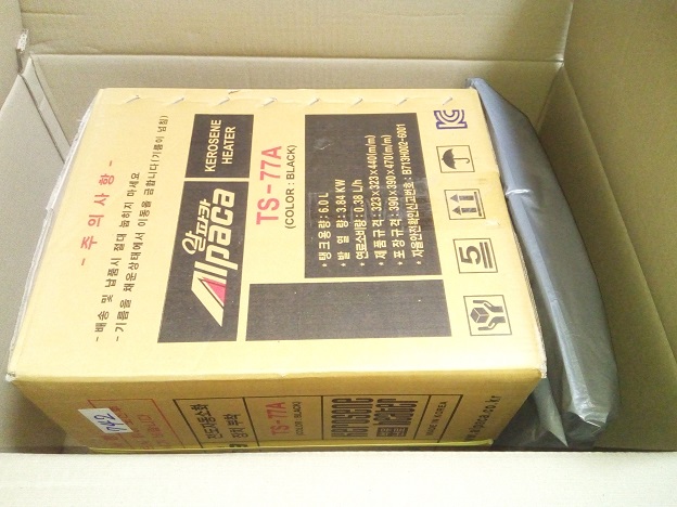 あまり信用できない燃料目盛り、そして本体に貼ってあるシールは全部韓国語、唯一わかったのが製造年2016.12.と印字されているので2年前の製品ってことかい??人気ストーブなのにどれだけ在庫抱えているんだよ!