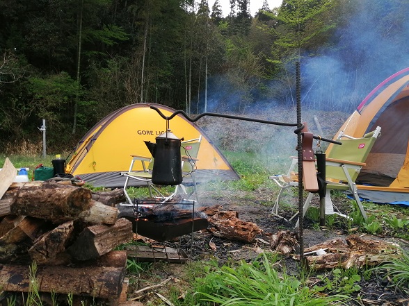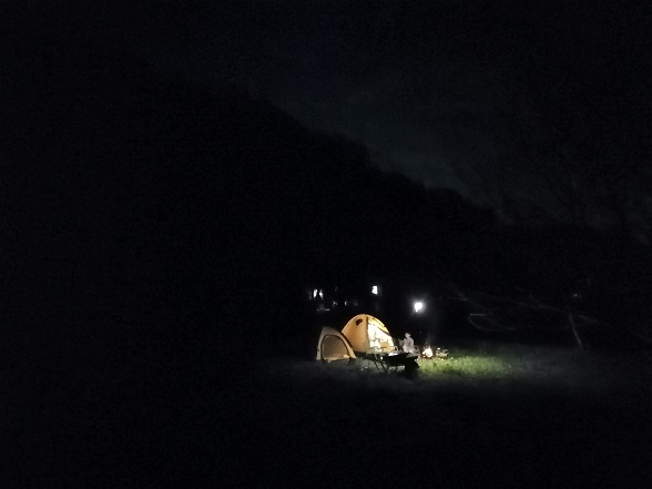 聞こえるのは、この時期の代名詞「カエル」の大合唱と、時折通る車の音ぐらいで、静かに焚火を楽しむことができます。