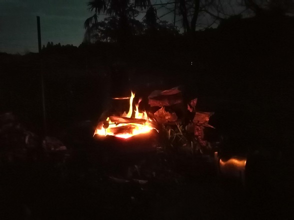 薪は大量にあるので、ガンガン燃やすと辺りも明るくなるので本当に照明は必要ないですね。