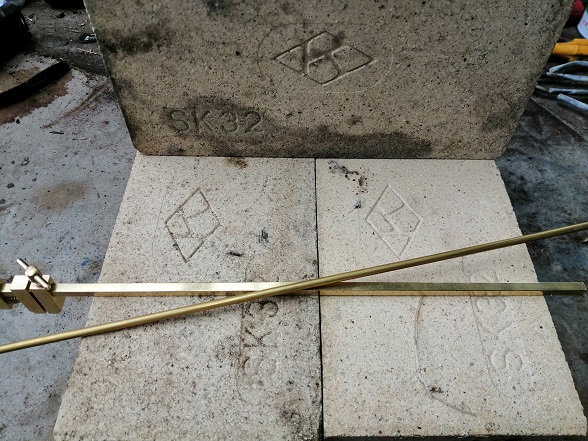 ハンガー部分を作る時、丸鋼(鉄材)を使った時は、万力とステンレスパイプで力任せに曲げましたが、真鍮をなました丸棒ならペンチで加工できました。