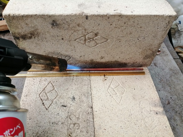 鉄よりも融点が低い(約800度)のでバーナーで簡単に赤くなります。真っ赤にする必要はないと思います。