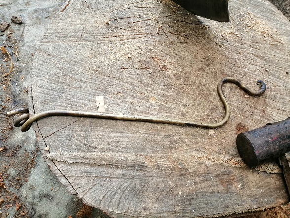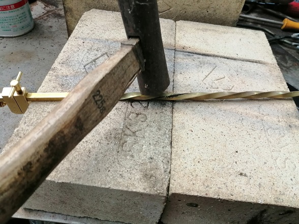 クルンクルン加工したら、最後に加工硬化させる為に玄翁でコツコツ叩いたら完成です。
