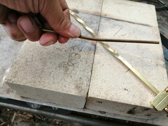 あらビックリ!面白いようにねじれていきます。焼きなましすることで真鍮は面白いように加工しやすい素材に変化します。