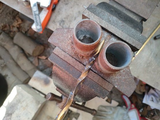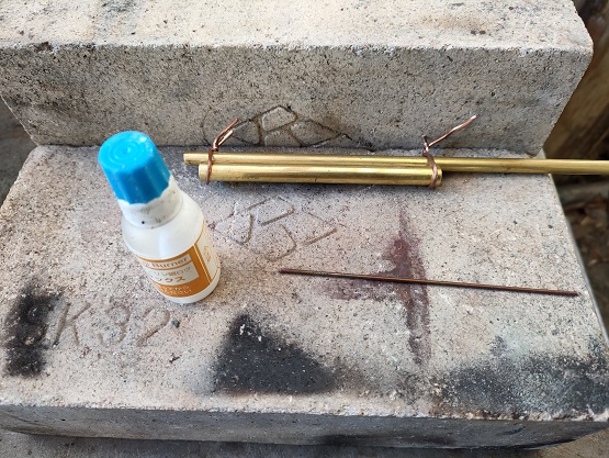 先ほど切ったパイプを約7Φに銅線を使った固定します。