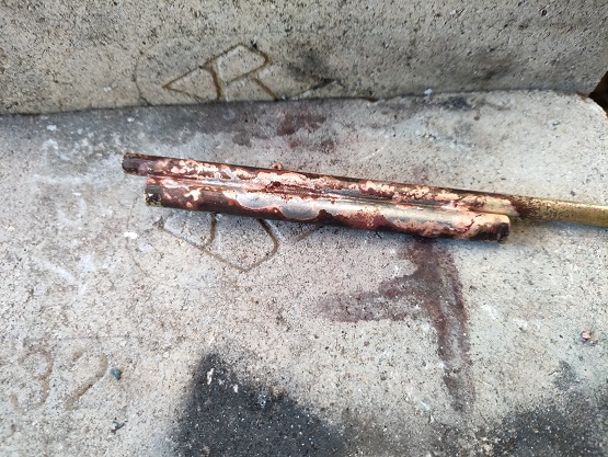 真鍮ブラシで磨くと、焼けただけならかなり綺麗になるので期待してブラシで磨きます。