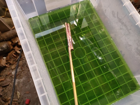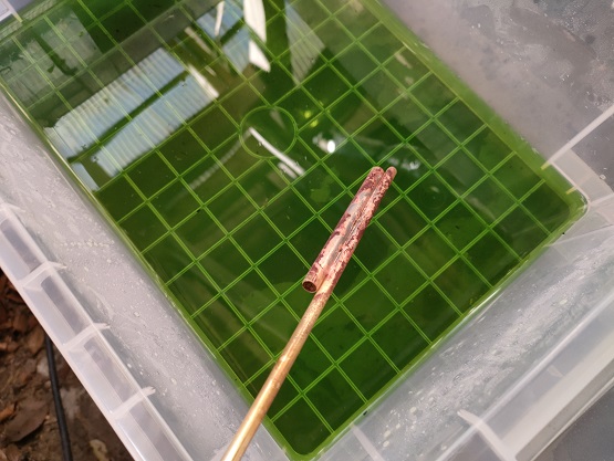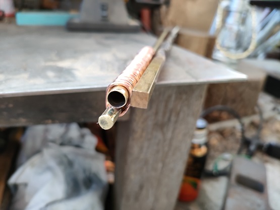 今回は土ではなく、くぬぎの木に穴を空けて真鍮を差し込んでみました。