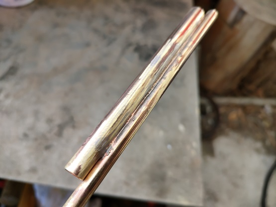 一応、ロウ付けは出来たようで、銅線を取り除いてもしっかりくっ付いています。外れないか捻ってみましたがしっかり付いていました。