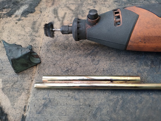 焼けた真鍮なら焼けが取れるので、多少は綺麗になることを期待。