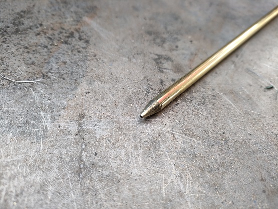 打ち込み支柱は鉄製の方が強度もあるし、溶接できるので作りやすいのですが、オール真鍮にこだわって作成です。
