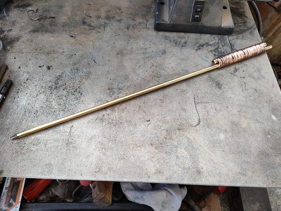 本当は真鍮線の方が一体感がでそうですが手持ちの真鍮線は2mしかないので足りない可能性もあるので、長さがある1.6mmの銅線を巻きつけて強度アップを図ります。