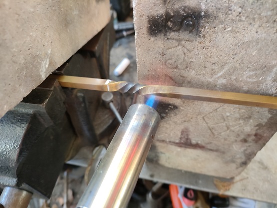 差込部の角度をつける為に「焼きなまし」をして真鍮を柔らかくします。