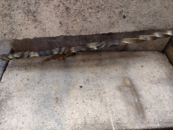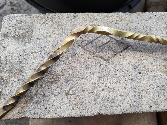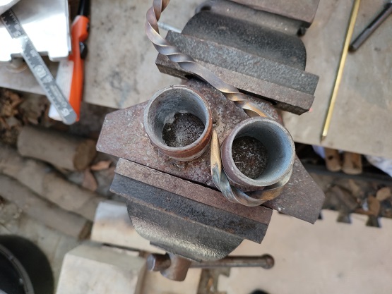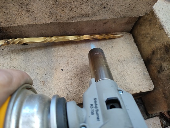 万力にセットして耐火レンガで熱が逃げるのを防止したらバーナーで過熱してツイスト加工していきます。