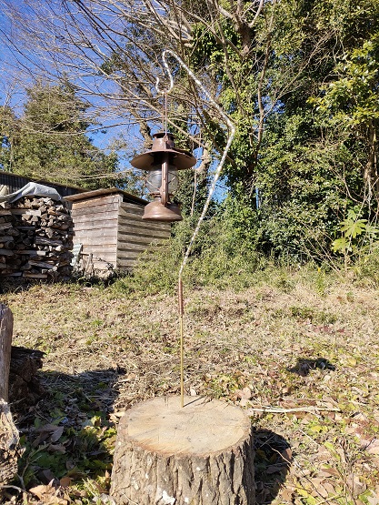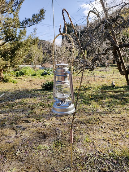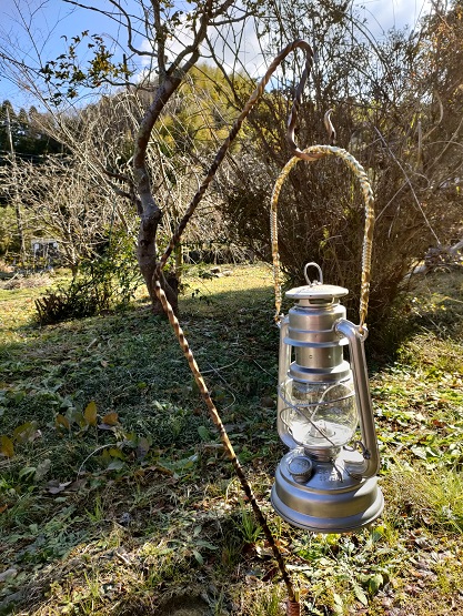お~!オイルランタンを吊るせた!!!ちょっと強度的に不安はあったんだけで全く問題なさそう。