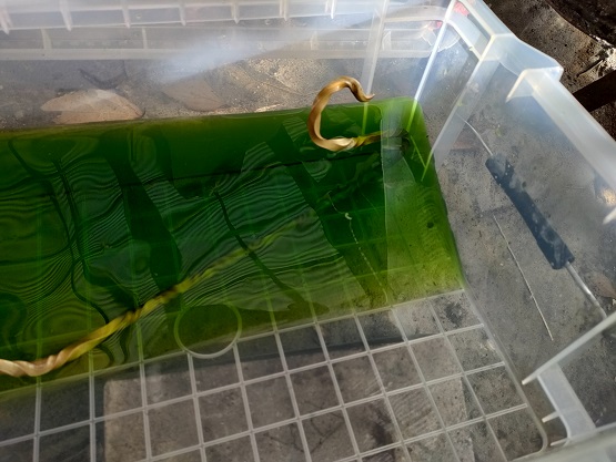 まずは黒く焼けた汚れを取る為に、塩酸につけて汚れを落とします。