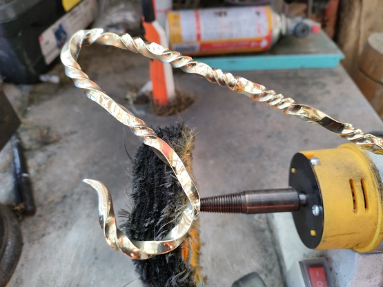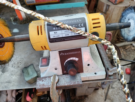 もっとピカピカの鏡面にする場合は、ツイスト部も綺麗に磨けるルーターで磨く必要がありますが、これはここまでで完成です。