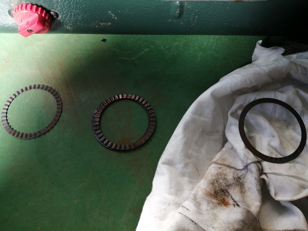 取り出したポンプカップ、劣化で切れたりしているので圧のかからない原因はカップの劣化ですね。