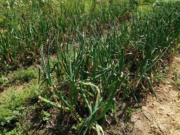 3年連続「べと病」に悩まされている玉ねぎ。4月には農薬に手を染めてみましたが結果はこんな感じです。