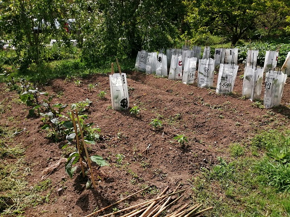 奥のジャガイモは順調に成長しているので、そろそろ開花するでしょうから、追肥&土寄せの時期ですね。