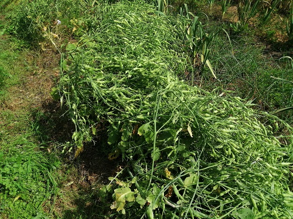 大風で倒れてしまっていますが、大量の莢が付いているので種も大量に採れると思います。