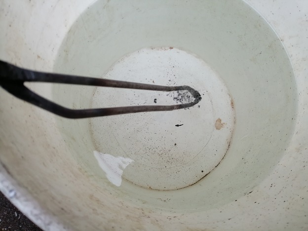 その後、水に入れて一気に冷まします。これで一応「焼きいれ」できたのかな?
