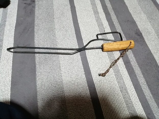 追記2:角棒で作った薪バサミだと重くて子供達が使いづらそうだったので9mm丸棒で再度可愛い薪バサミを作ってみました。
