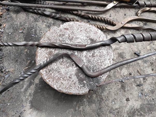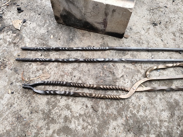 今まで異型鉄筋を角材にしてS字フックを作ったり、薪バサミを作ったりしていました。