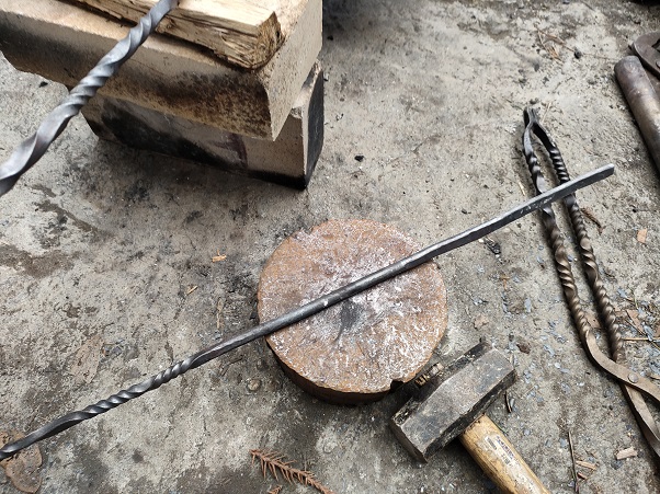 ツイスト加工完了!丸棒部分は持ち手となるのでこれから加工します。