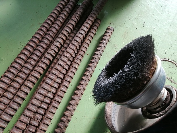 異型鉄筋の錆落としは「カップブラシ」を使います。