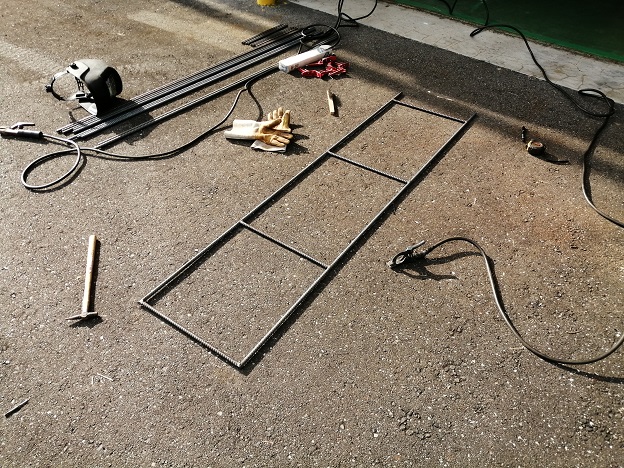使った異型鉄筋は計算では5500mmが5本ちょっとでしたが、家に転がっていた異型鉄筋も使ったので、新たに購入したのは、5500mm×3本で1本540円だったので、計1,620円と少ない費用で作成することができました。