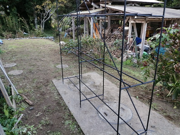 材質をどうするか色々検討してみました。2×4で作るか?単管を使って作るか?異型鉄筋で作るか?