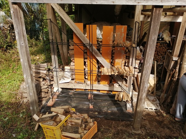 完成したばかりの薪棚ですが、ほぼ薪で埋まりました。まだまだ、大量に薪が手に入ることに生っているので状況を見ながら再度、異型鉄筋を使って薪棚を作ろうかと考えています。