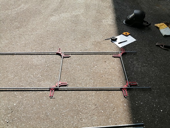 コーナークランプを使って溶接していきます。溶接の際はこのコーナークランプがあると4隅をしっかり固定できるので重宝します。