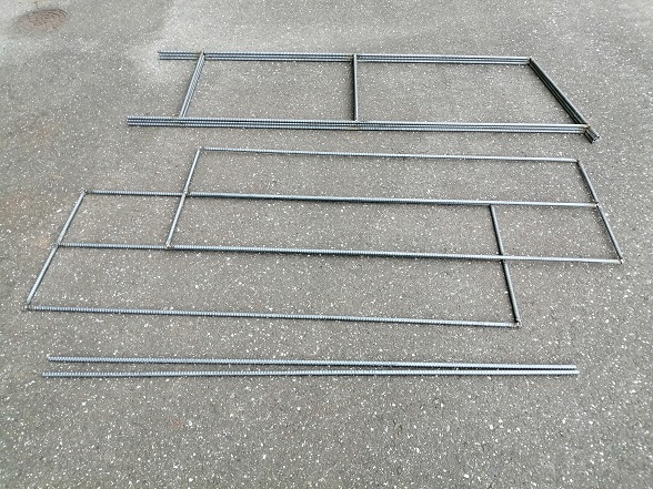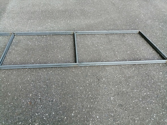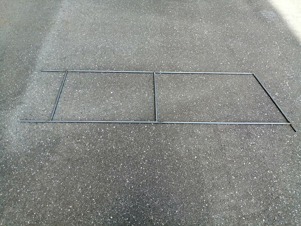 続いて、棚となる2枚の溶接も完了。これで材料は整いました。ストレートの鉄筋は筋交い用です。