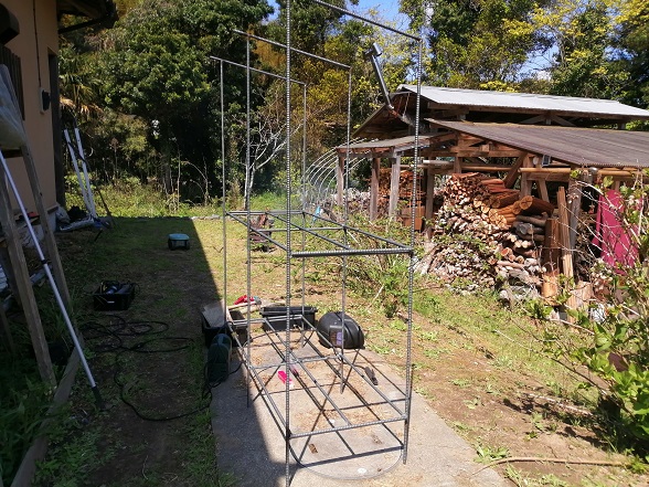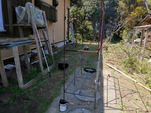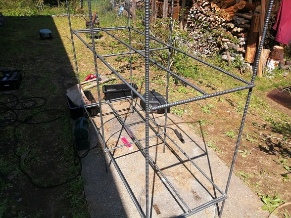 3つ完成。やっぱり200Vの溶接機で溶接すると簡単に鉄筋を溶接できるので作る時間が短くて済みます。