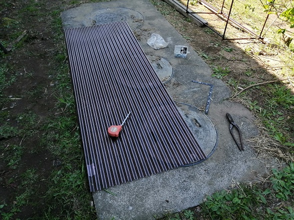 ペンキが乾くまでには時間がかかるので、それまでにポリカの波板をカットします。