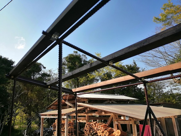 格安で屋根付きの薪棚を作るとなると、材料は異型鉄筋ですね。