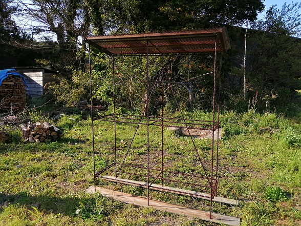 設置場所はここではないので、定位置に移動したら薪棚として使っていきます。