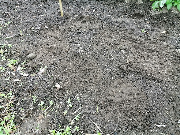 すでに芽が出ている株もあるので、いつもよりも深めに植えつけてみました。