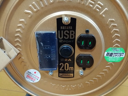 今回、ホームセンターで購入してきたのが、「ハタヤUSBポート付きコードリール」です。