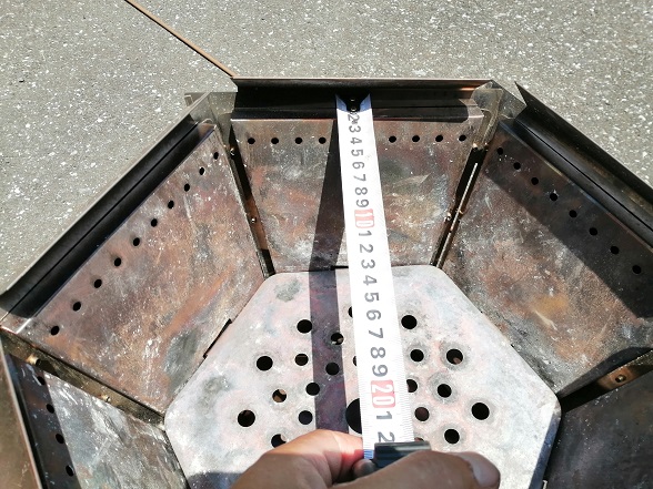ピッタリサイズですね。薪の投入も出来るし、ケトルでお湯も沸かせちゃいます。ダッチオーブンなどの大きなものには使えませんが十分でしょう。