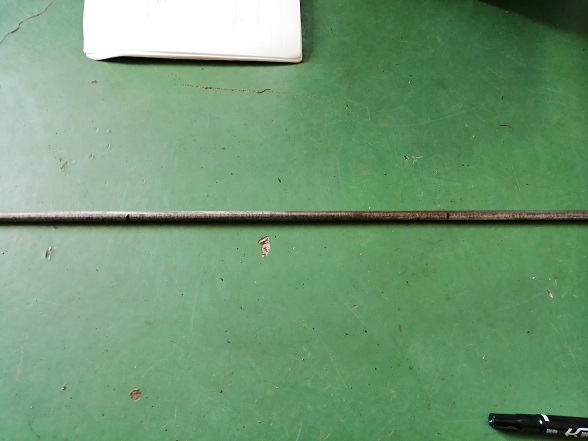錆だらけの丸鋼の錆を落としたら、長さを計ってマジックで印をつけていきます。