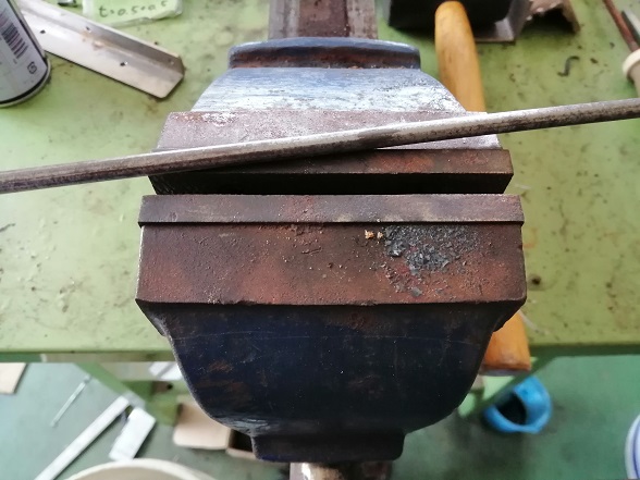 6mmなので、万力はなくても簡単に曲がるのですが一応万力を使って曲げていきます。