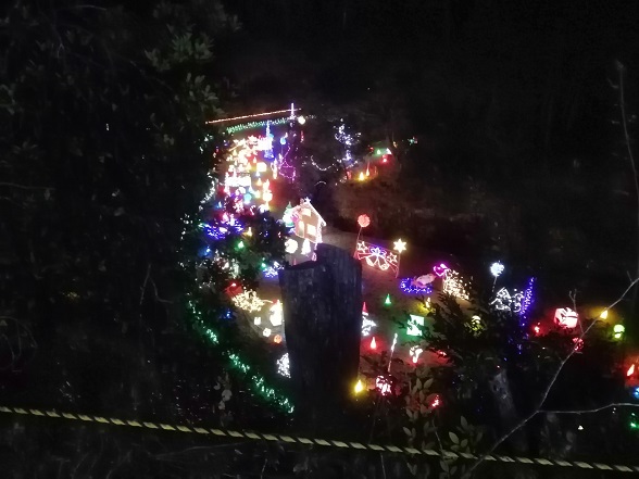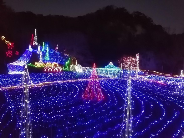 昨年はライトアップされていなかった遊歩道がライトアップされていたので、キャンプ場のイルミネーションを高いところからみることができます。