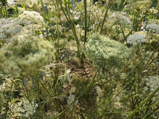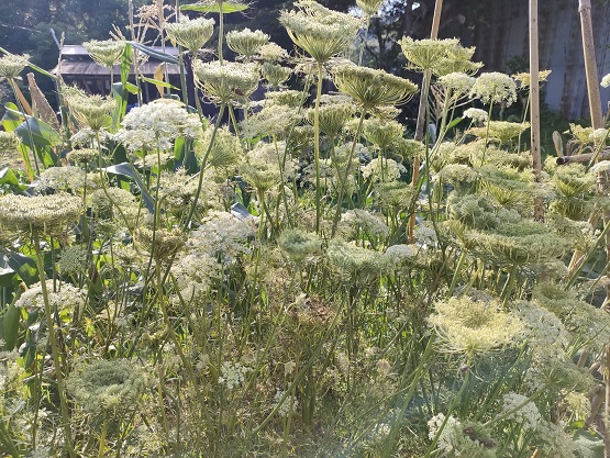 ニンジンの花って綺麗ですよね。窪んでいる花が種になります。
