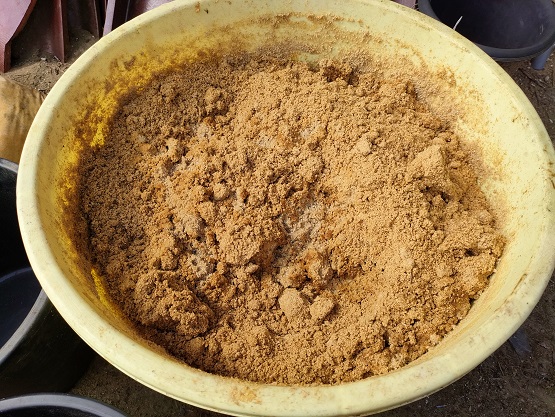 鶏糞も同様に一握り。