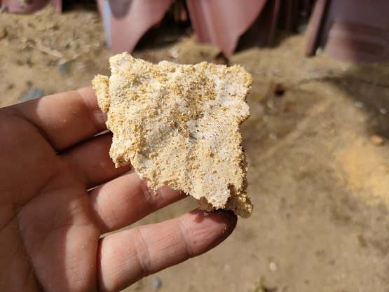 納豆菌の集合体です。こうなったら、細かく砕いて再度、米ぬかに透き込みます。