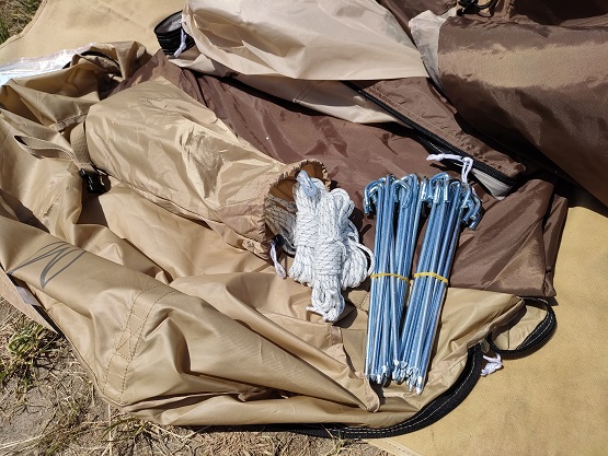 付属品はロープとペグ。重量アップの原因はこのペグかな?2はアルミだったと思うけど、3は鉄になっています。使うことはないので、その分軽くなるかな?