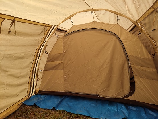 テント内部にほつれや、チャック破損などが無いことを確認。