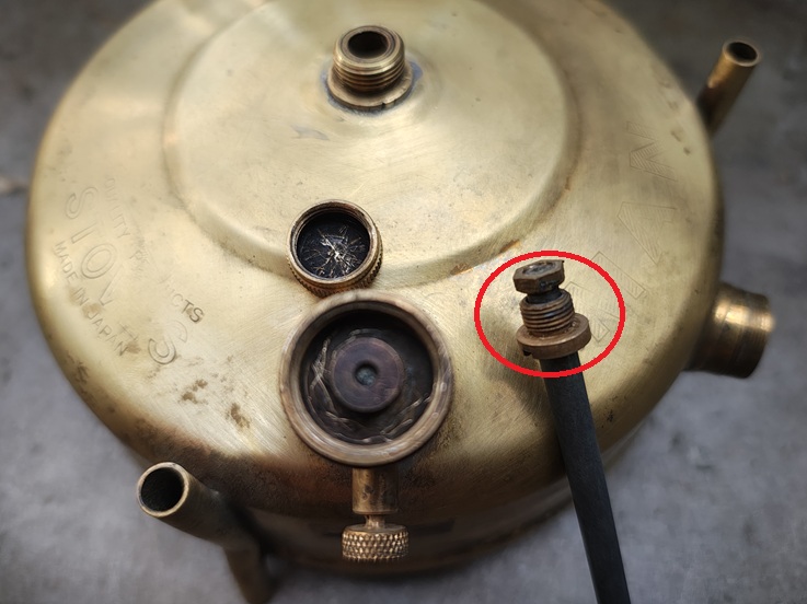 写真の部分ですね、ここないとタンクに圧かけれないので、アマゾンでM8の真鍮薄ナットを注文したました。